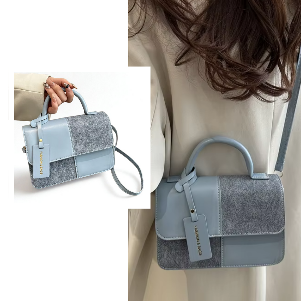 Chic structured handbag with mixed textures, offering a sleek, practical design perfect for daily essentials and elevated outfits.