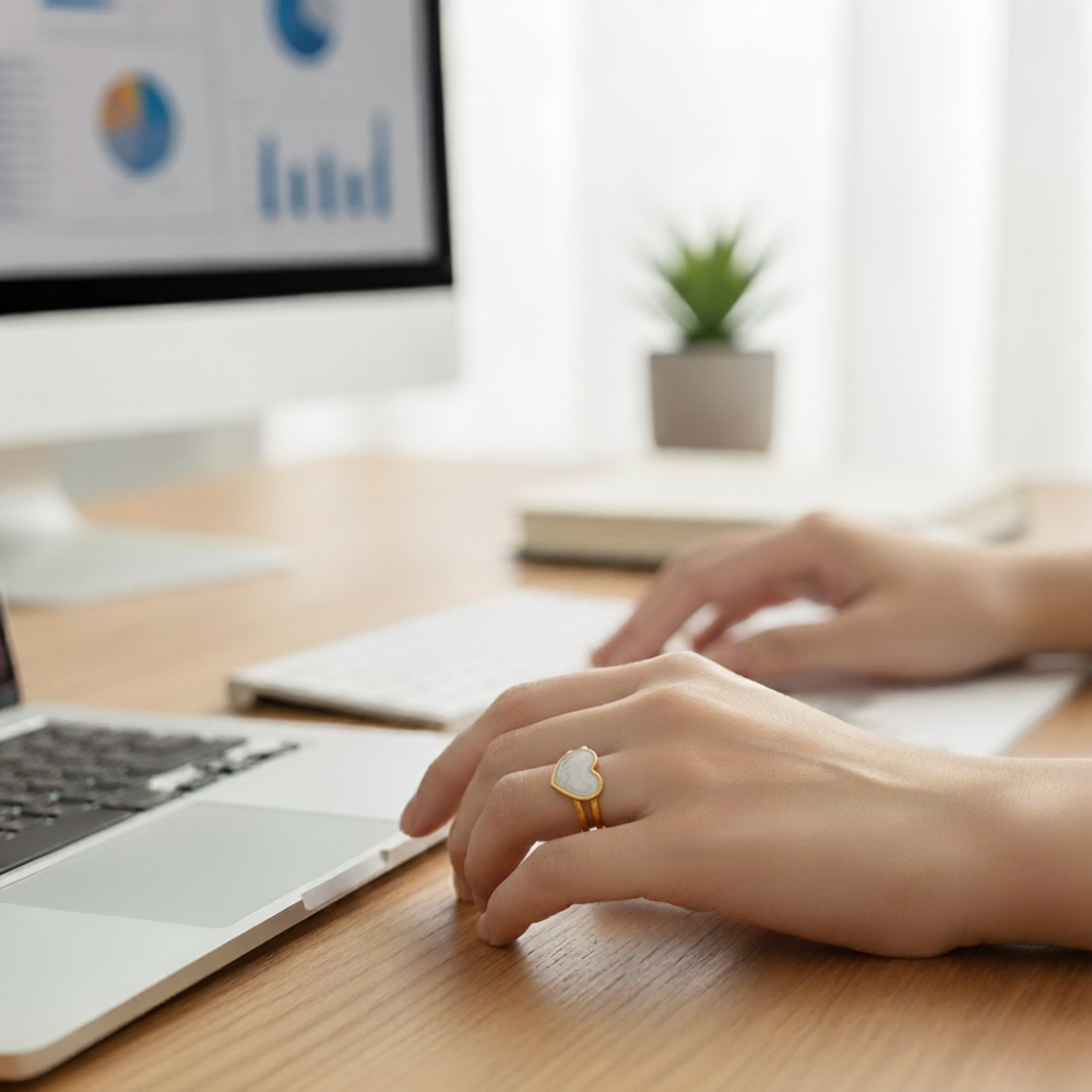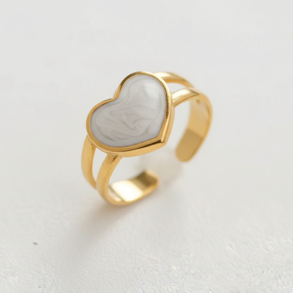 Elegant gold-plated ring featuring a white marbled heart design — resizable, lightweight, and perfect for adding a soft romantic touch to any look.