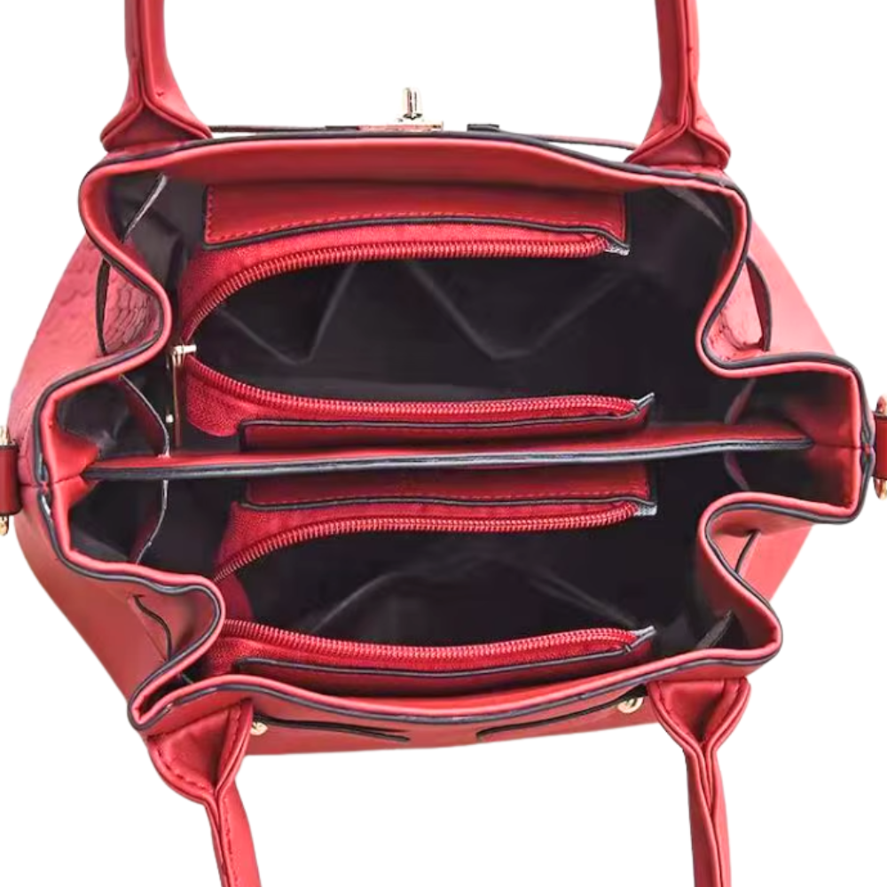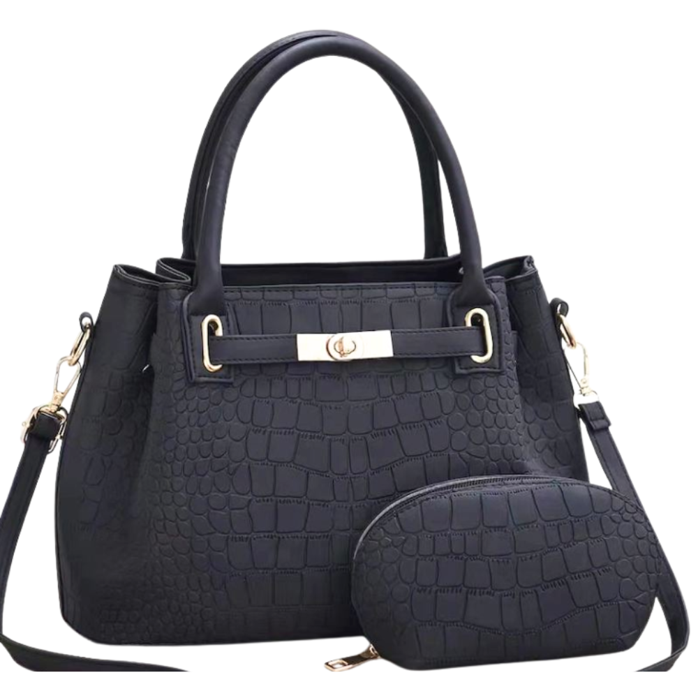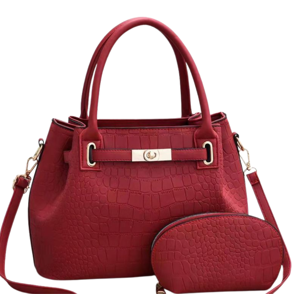 The Corsa Set offers timeless elegance with its croc-textured finish and structured silhouette. Includes a matching pouch for your essentials, perfect for daily chic or classy outings.