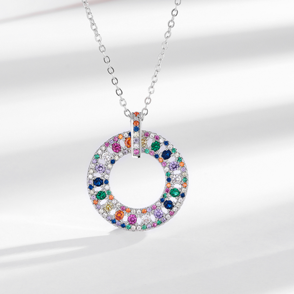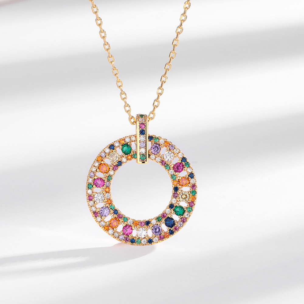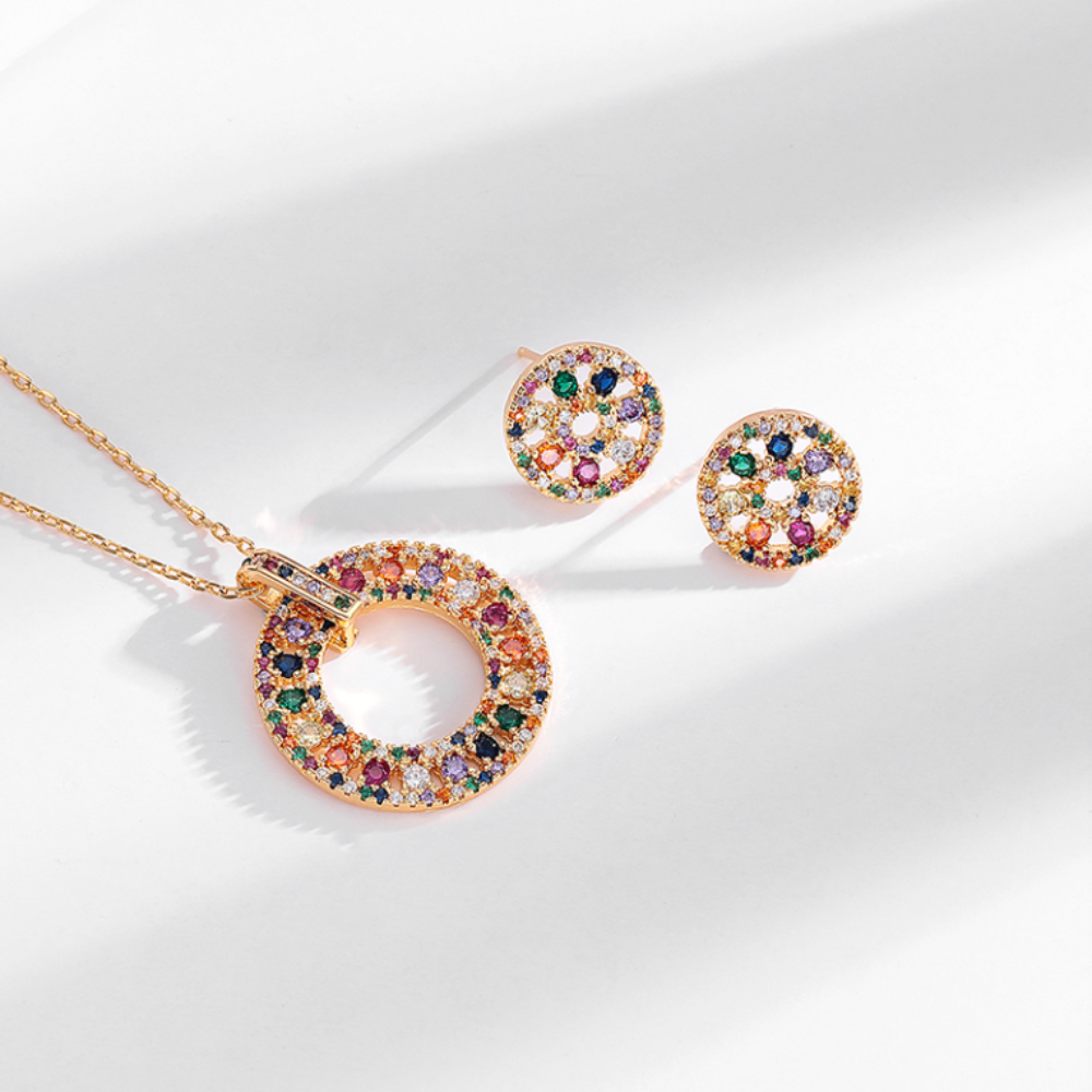 Sparkling with multi-colored stones, this playful set adds a bold, elegant twist to your everyday look. Necklace and earrings crafted to stand out.