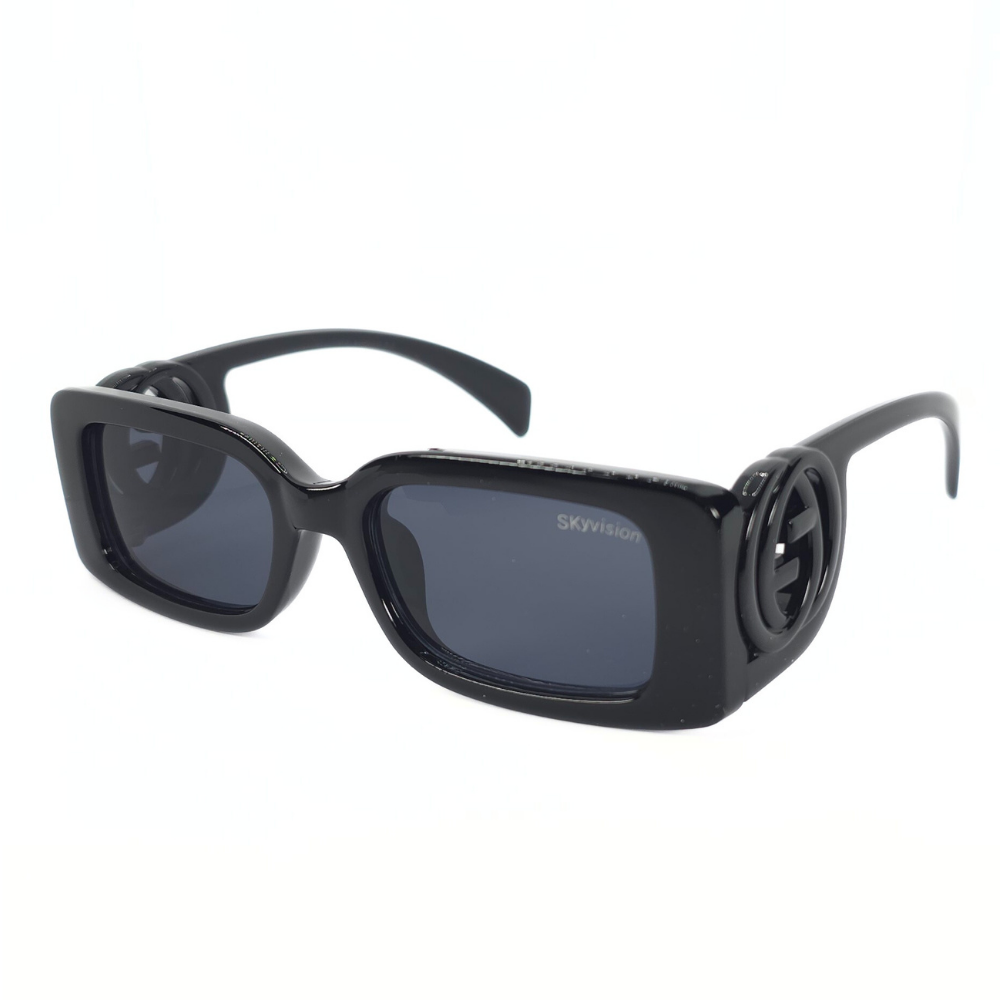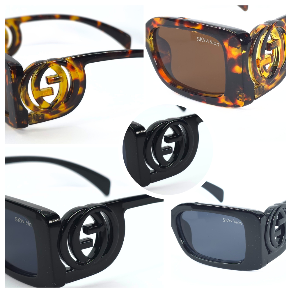 Bold rectangular shades with signature circular side detail — fashion-forward, daring, and built to stand out.