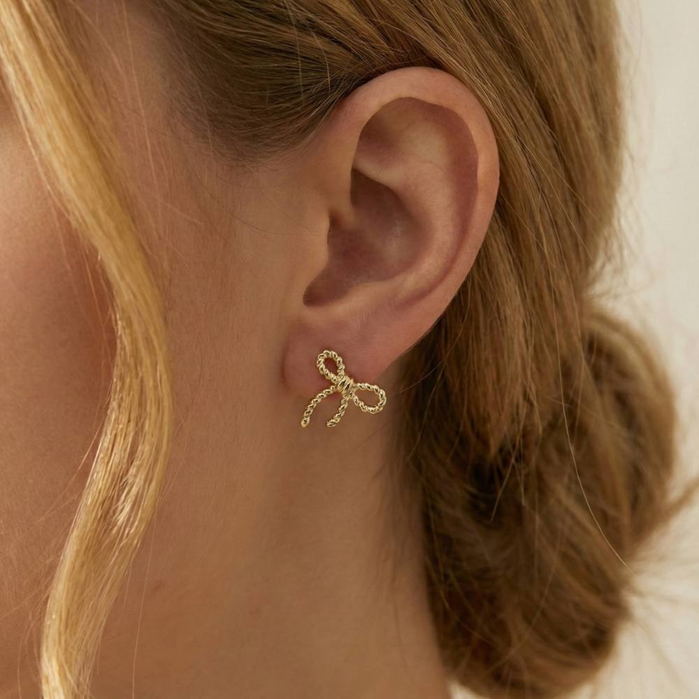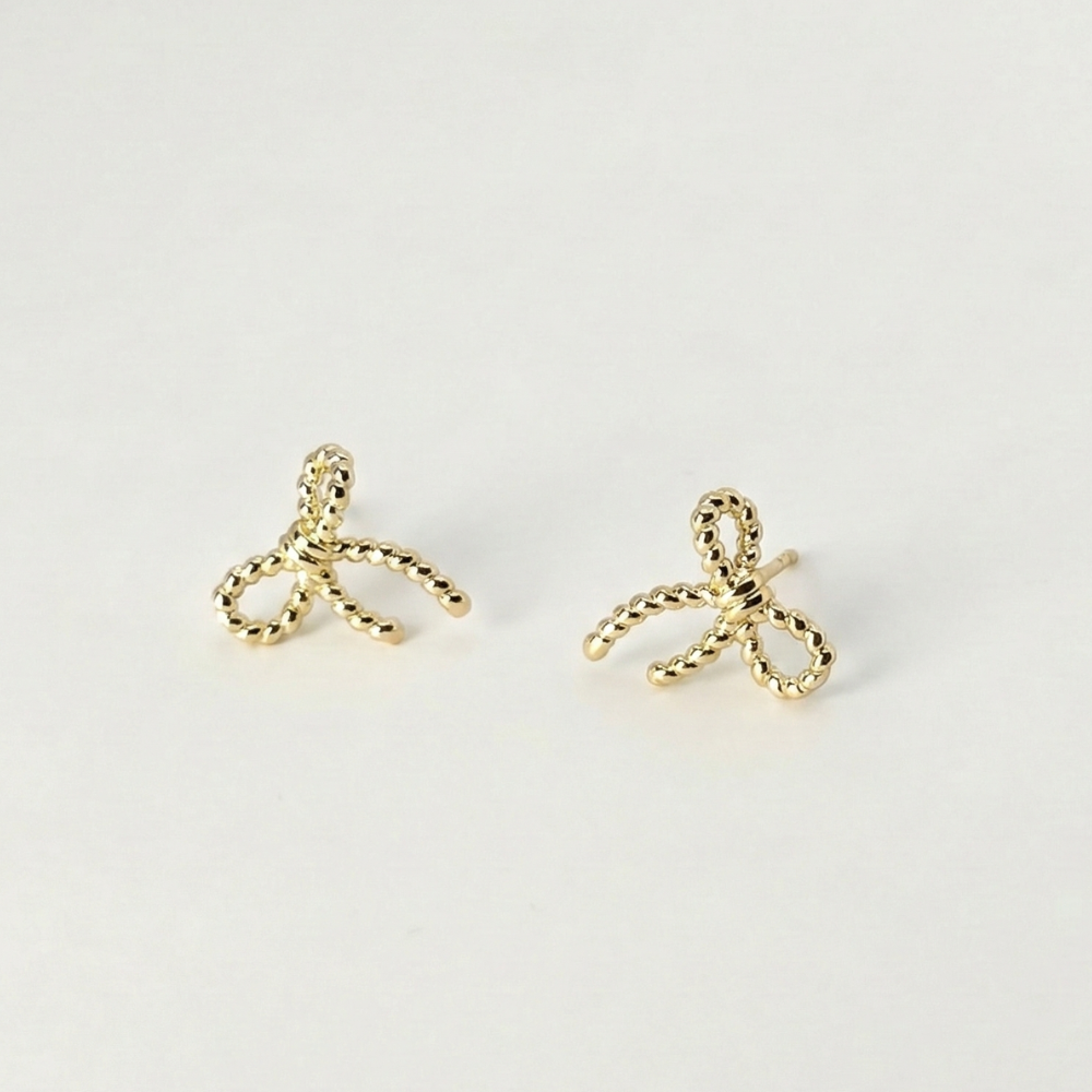 Delicate and feminine, this mini bow-shaped stud features a textured gold design that adds a subtle, playful charm—perfect for everyday elegance or a sweet finishing touch.