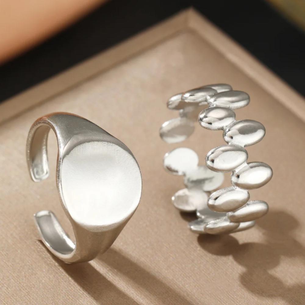 A bold, modern ring set with a smooth, high-shine finish. Both rings are fully resizable for a perfect, comfortable fit. Wear them together or separately for versatile style.