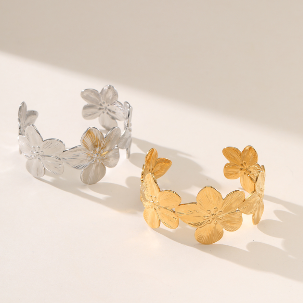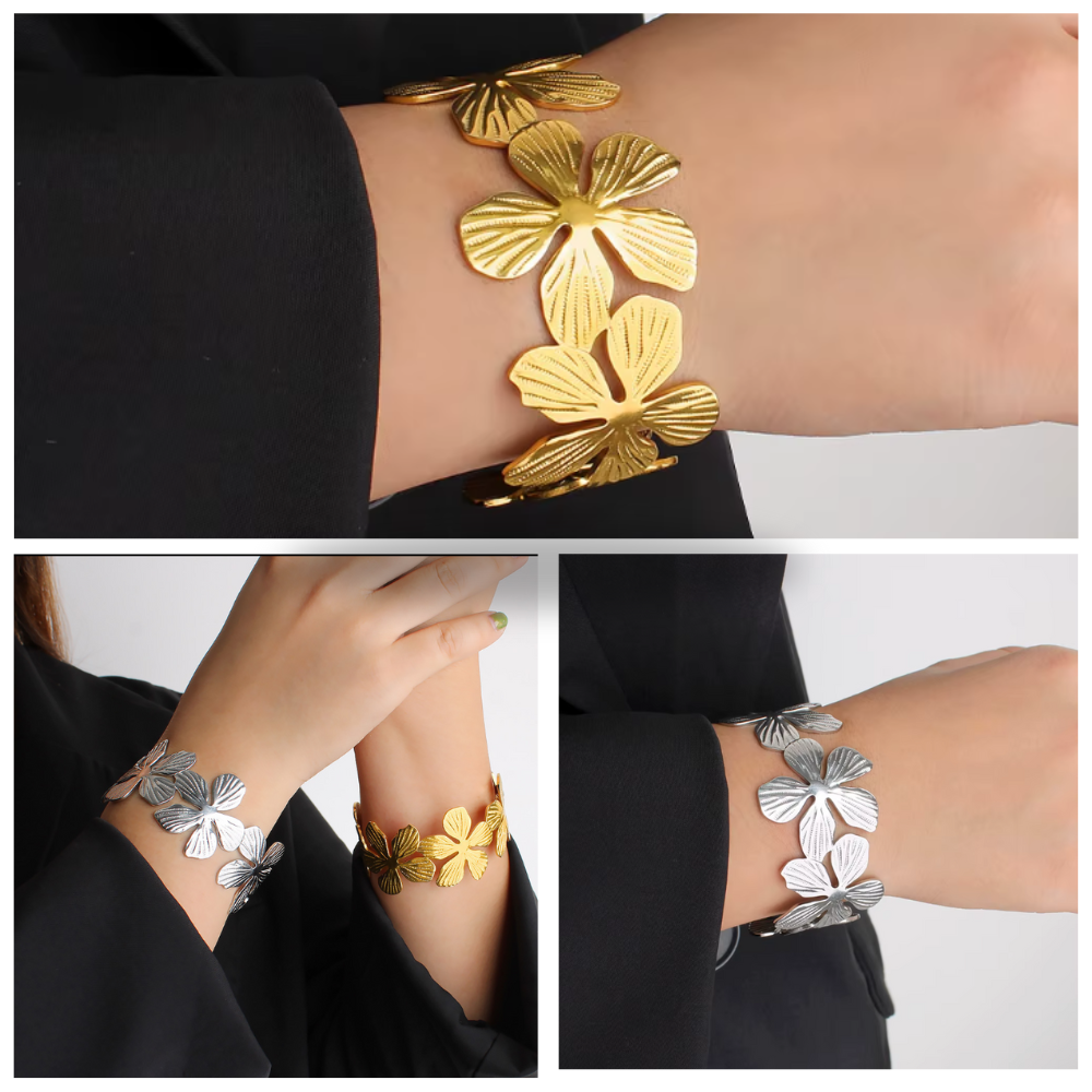 A floral-inspired statement, the Petal Bloom Bracelet brings soft, feminine elegance to your wrist with its bold and delicate design.