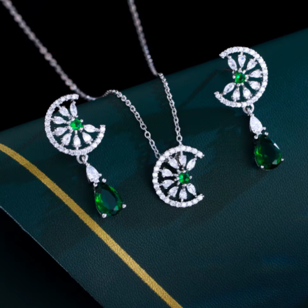 Shine with elegance in the Qamar Spark Set — a unique moon-inspired design for a statement look full of charm.