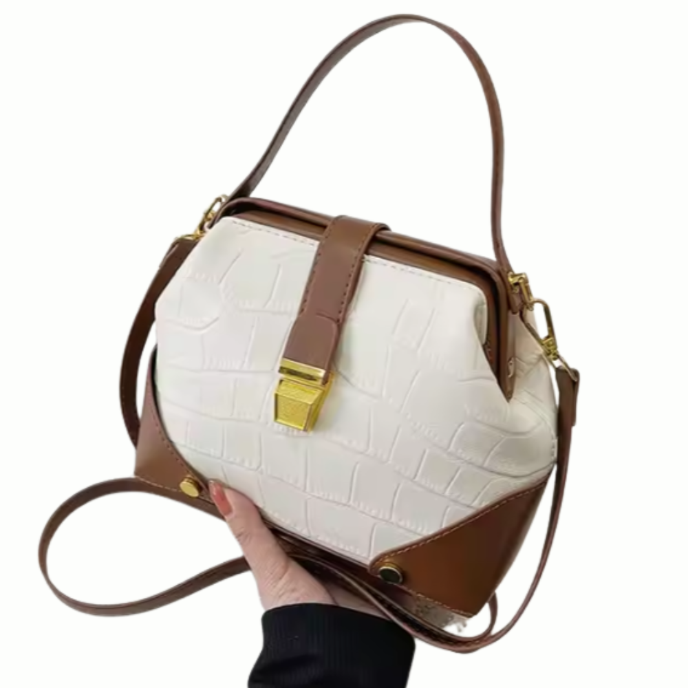 Trendy handbag with structured silhouette, crocodile texture, and gold buckle detail. Features a top handle and adjustable strap for versatile everyday styling.