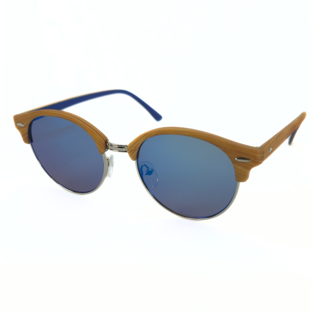 Bold blue lenses with a trendy wood-touch frame — lightweight, cool, and perfect for kids who love playful style with full UV protection.