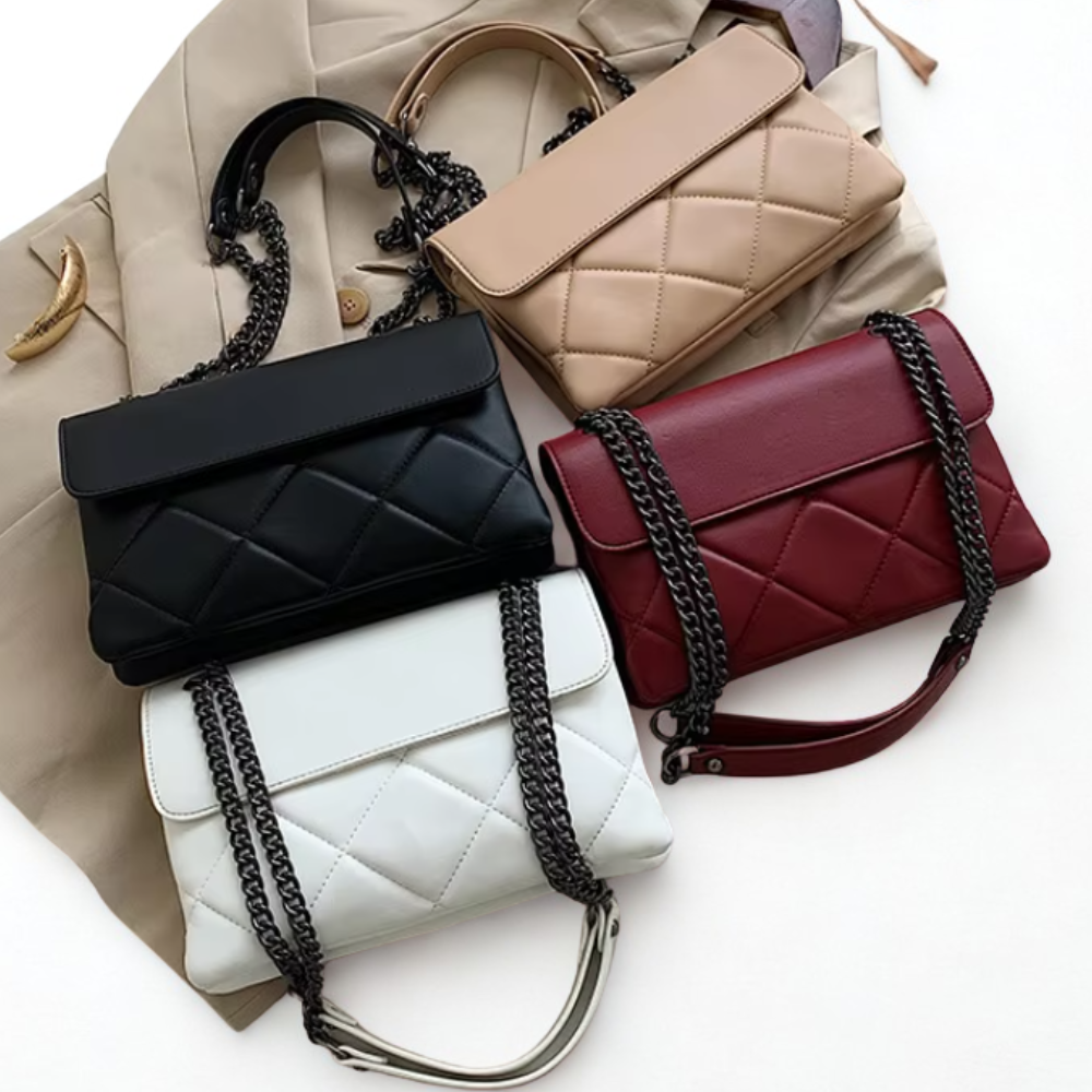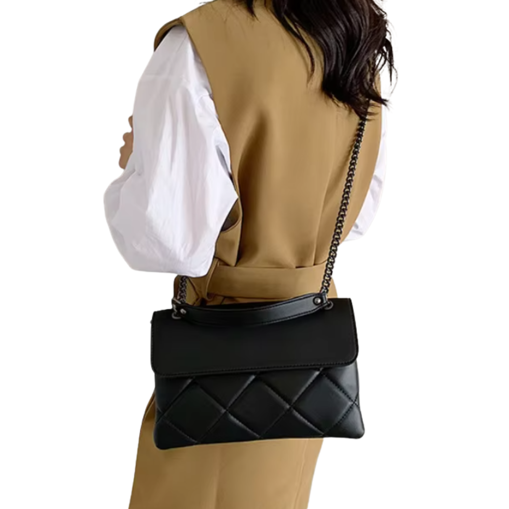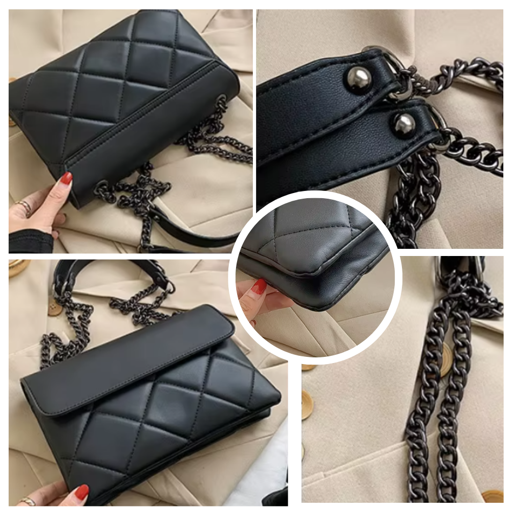 Elegant quilted design with bold chain straps, perfect for everyday style or casual chic looks.