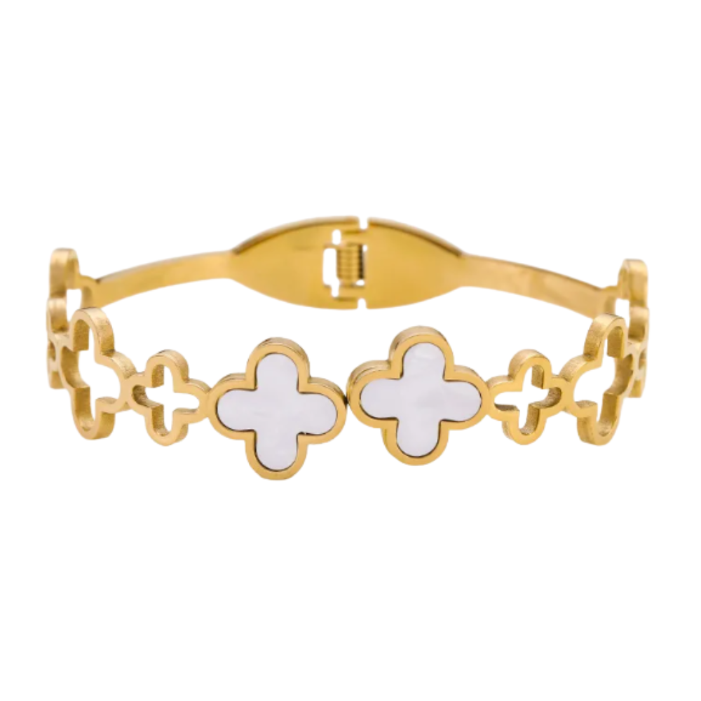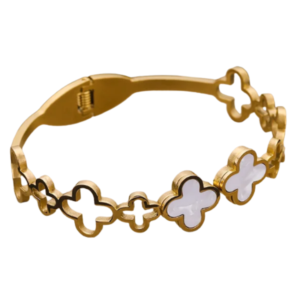A delicate bracelet with clover-inspired details, blending modern shine with timeless elegance—perfect for everyday chic or layered luxury.