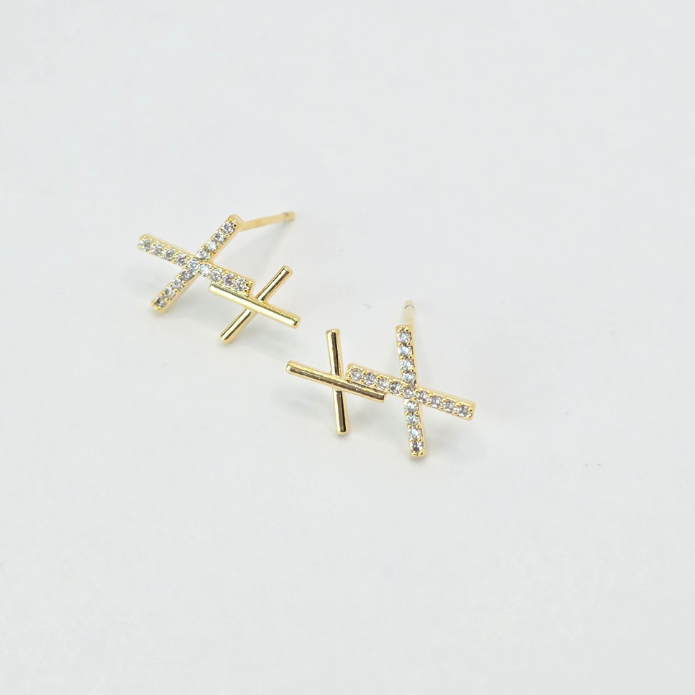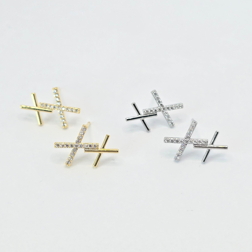 Sleek criss-cross studs adorned with shimmering stones, offering a modern sparkle in gold or silver — perfect for everyday wear or a subtle statement.